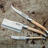 This cheese knife set is also one of those gems to add to your cheese board. The set includes 3 cheese knives made of high quality Stainless Steel and Oak wood. The stonewash finish gives the knives a tougher look. Perfect for every table setting. The blade is 2.5 mm thick, not dishwasher safe and packed in a luxurious black box.