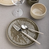 A stylish fork in matte stainless steel with a grey/beige hexagonal handle in SPS. Very light and fits comfortably in the hand. Suitable for both classic and modern table settings.