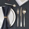 A knife in matte stainless steel characterized by its elongated and elegant shape. Suitable for both classic and modern table settings.