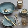 A knife in golden stainless steel characterized by its elongated and elegant shape. Suitable for both classic and modern table settings.
