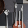 A modern spoon in stainless steel. Has a stylish shape reminiscent of Japanese design. Suitable for both classic and modern table settings.