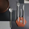 A modern fish fork in stainless steel. Has a stylish shape reminiscent of Japanese design. Suitable for both classic and modern table settings.