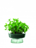 A self-watering planter mouth-blown from recycled glass. Fill the lower compartment with water and the top compartment with soil and plants. The cord between the two layers will carry water to the soil.