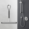 Badrumsskrapans moderna design med sina tydliga, reducerade linjer passar stilfullt i nästan alla badrumsmiljöer. Och vart man ska gå bör inte vara ett problem med JAZ, eftersom den stora, flexibla öglan gör att tillbehöret kan hängas upp på många sätt. Den högblanka polerade 18/10 rostfria stålkroppen på torkaren står i tydlig kontrast till de matt svarta plastdelarna på handtaget och de två ändlocken.Den mjuka gummiläppen som sticker ut till torkarens ytterkanter garanterar utmärkta rengöringsresultat. Den kan enkelt bytas ut, reservdel.